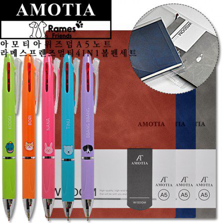 볼펜판촉물 아모티아 위즈덤노트+라메스프렌즈 멀티4in1 볼펜세트